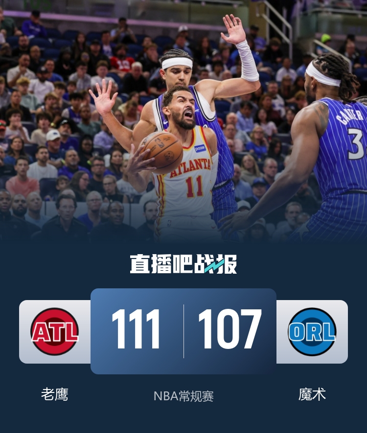 10月25日,NBA常规赛如火如荼地进行。魔术队在主场迎战老鹰队,经过激烈的较量,魔术在首场比赛中顺利获胜,取得了开门红;而老鹰则未能迎来首胜,遗憾落败。