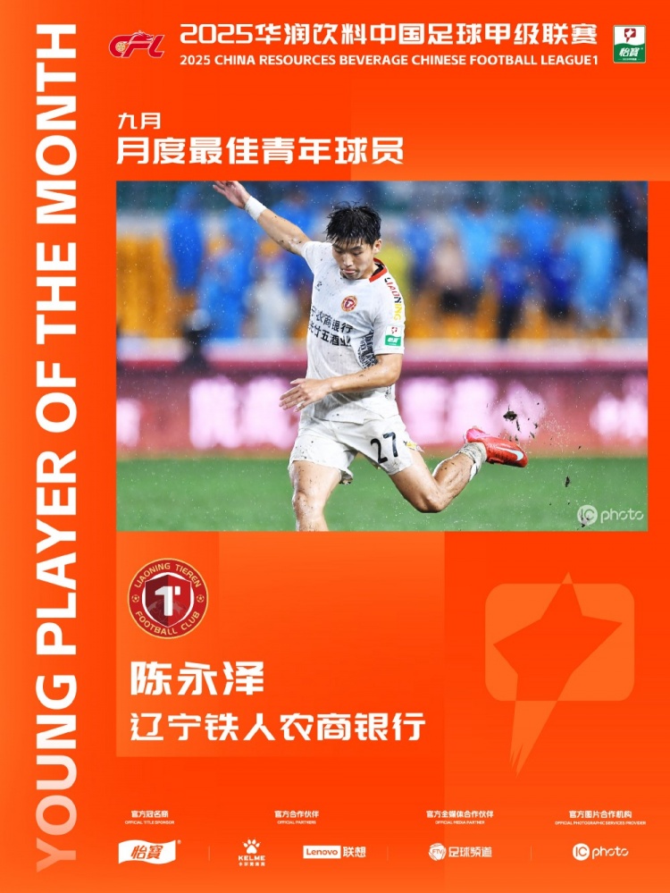 在10月31日的消息中,中甲联赛官方宣布了9月的最佳青年球员,来自辽宁铁人的陈永泽荣获此殊荣。他在9月的比赛中表现出色,贡献了1个进球和1次助攻。