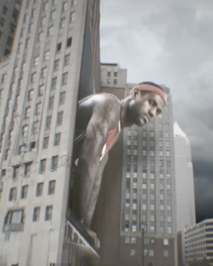 在这些精彩片段中,我们看到了曾经的传奇球员,如詹姆斯和瓦莱乔。影片里,詹姆斯从克利夫兰街头的一幢建筑里探出头,脚步稳健地走向前方,镜头特写了他右小腿上的“见证者(Witness)”纹身。而瓦莱乔则从队标中拔出了骑士的宝剑,展现出满满的力量感。