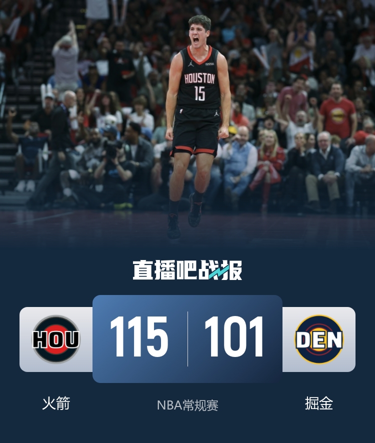 进入末节,小阿德尔曼因技术犯规被驱逐出场,而火箭的杜兰特则在这一节继续展现优秀的得分能力,最终将领先优势扩大至20分以上。最终,火箭以115-101击败掘金,为本场比赛复仇成功。