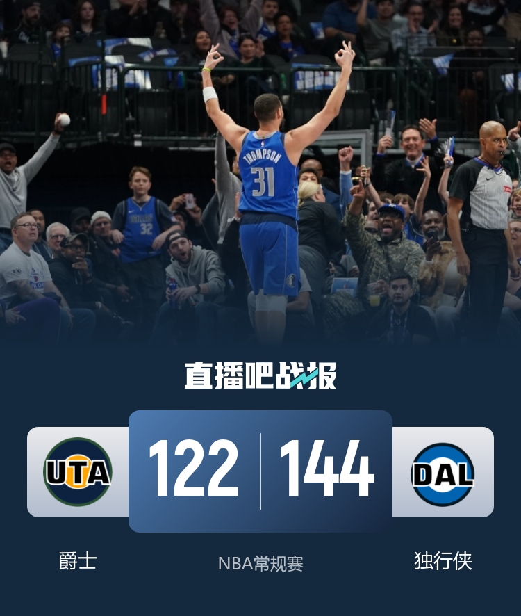 易边再战,独行侠的气势如虹,篮下轻取分数的同时,外线表现也相当出色,单节竟然轰下42分,三节过后以112-79建立起压倒性的优势。进入最后一节,随着比赛的逐渐失去悬念,独行侠稳健地控制局面,将胜利的果实牢牢握在手中,最终以144-122轻松战胜爵士。