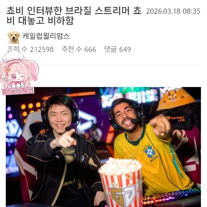 采访结束后,Baiano在社交媒体上发言称:“这是一个了不起的时刻,我只想感谢Chovy(并配上爆米花表情),谢谢你给了Faker三个冠军。”这种言辞无疑让Chovy承受了额外的压力,同时也引起了不少关注者的反感。更值得注意的是,在Baiano的采访中,Chovy还表示了对巴西的喜爱,存在一定的不协调。
