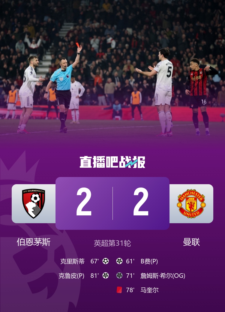 曼联在本轮英超联赛中经历了一场激动人心的较量,最终与伯恩茅斯以2-2握手言和。比赛中,B费通过点球为曼联首开记录,而球队的表现则因马奎尔的红点套餐而备受争议。值得一提的是,阿玛德在比赛中倒地却未能获得点球,场上场下都引发不少讨论。