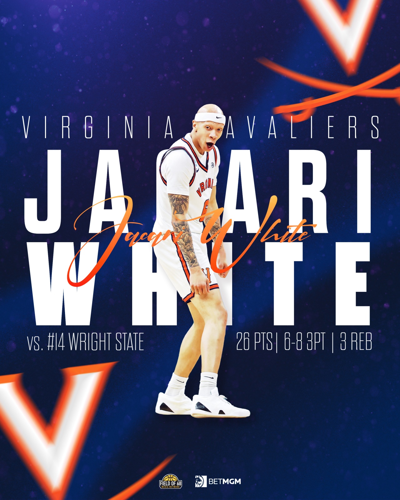 在3月21日的NCAA疯三首轮中,弗吉尼亚大学迎来了与莱特州立大学的较量。作为中西区的三号种子,弗吉尼亚大学以82-73的比分取得了胜利。然而,更引人关注的并非比赛的最终结果,而是场上一位特别的球员——贾卡里·怀特。