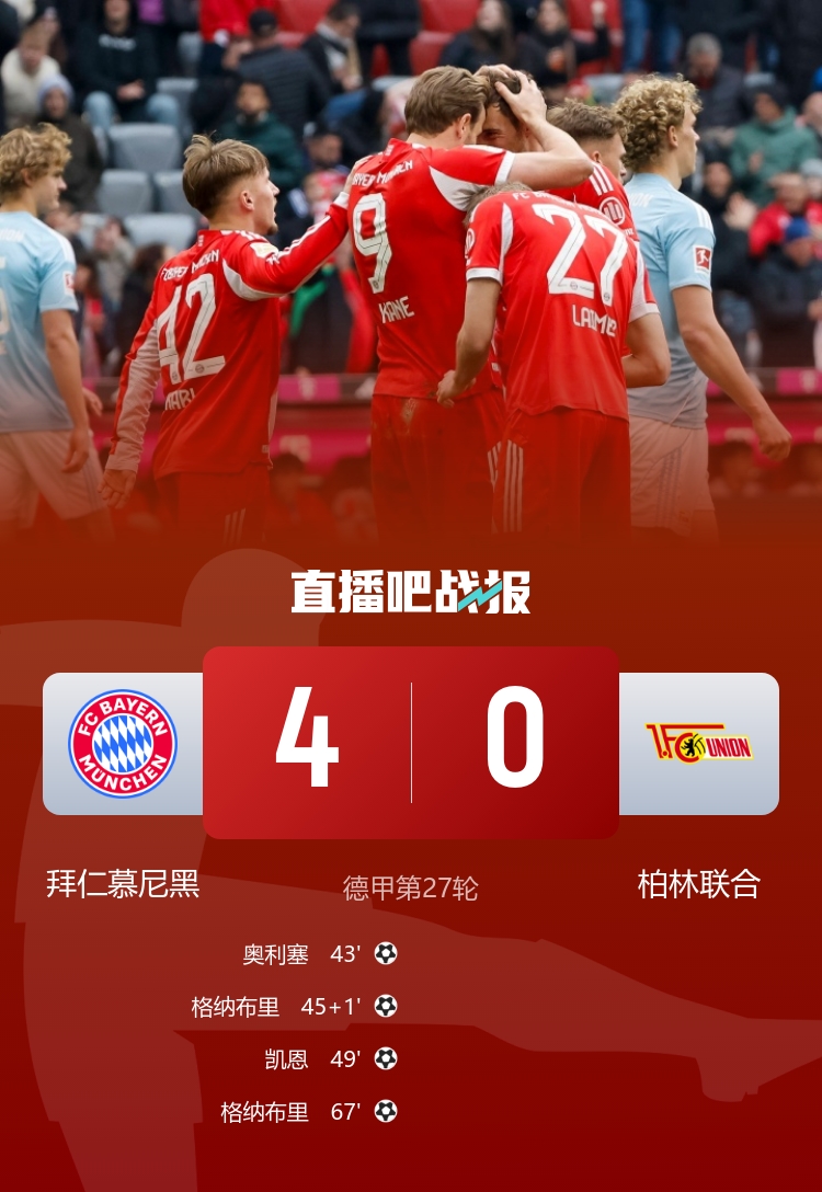 最终,随着哨声响起,比赛以拜仁4-0的完美收官。是一场实力与技艺的完美演绎,拜仁慕尼黑以王者姿态屹立不倒,而柏林联合则需在职业生涯的道路上汲取教训,继续前行。