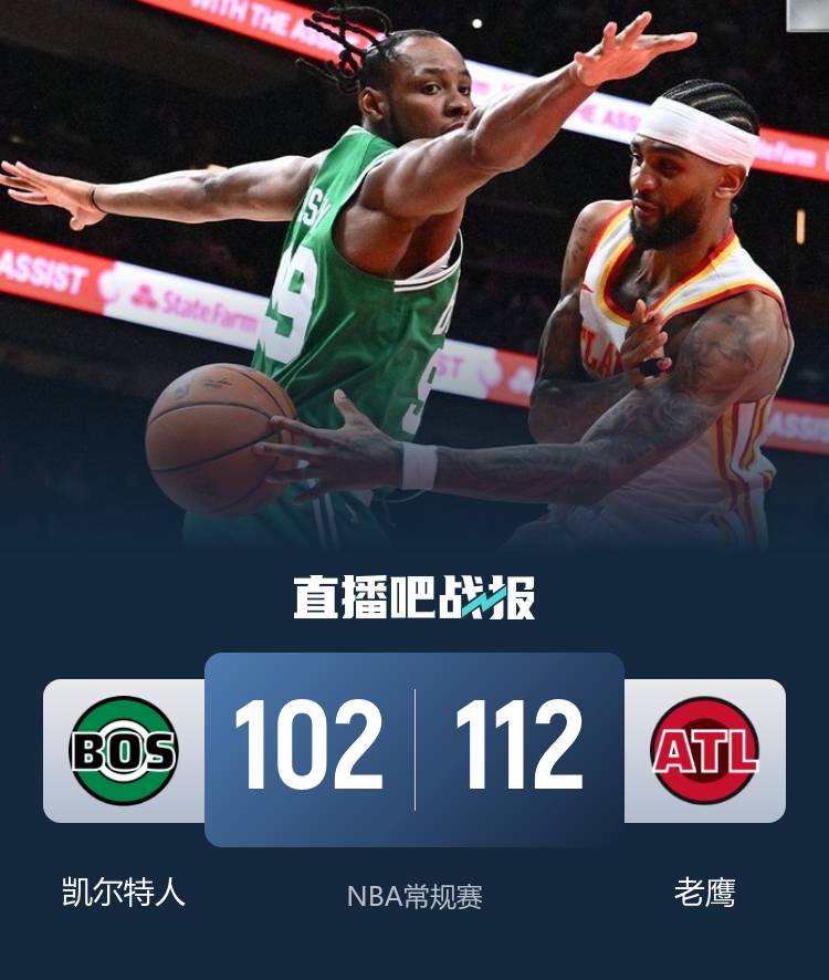 下半场开始后,老鹰的奥孔武找到了手感,连中三分,帮助球队逐渐扩展领先优势。尽管凯尔特人努力追赶,但始终未能扭转局面。老鹰多点开花,分差一度拉开到20分以上,杰伦·布朗虽然在末节独得连续得分,但为时已晚。最终,老鹰以112-102战胜了凯尔特人,成功在主场拿下这场胜利。
