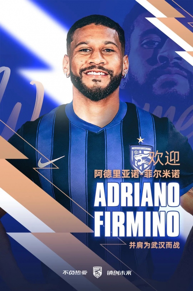 现在,加入三镇大家庭的阿德里亚诺-菲尔米诺,必将在挑战的舞台上,凭借过人的才华与顽强的斗志,书写自己的新篇章。他的脚步虽已开始在新的赛场上迈出,但更为重要的是期待他能够迅速融入团队,与队友们共同面对接下来的每一次较量。欢迎阿德里亚诺的到来,愿他在武汉的蓝天白云下,再次绽放出璀璨的光芒!