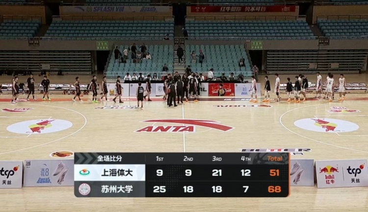 末节比赛,上海体大再次发起反击,刘宇表现出色,带领球队打出7-0的小高潮,将分差缩小至15分。然而,苏州大学的优势依然十分明显,郭子钰和吴锡鸿的得分帮助球队稳定了局面,最终,苏州大学以68-51成功击败上海体大,赢得了这场比赛的胜利。